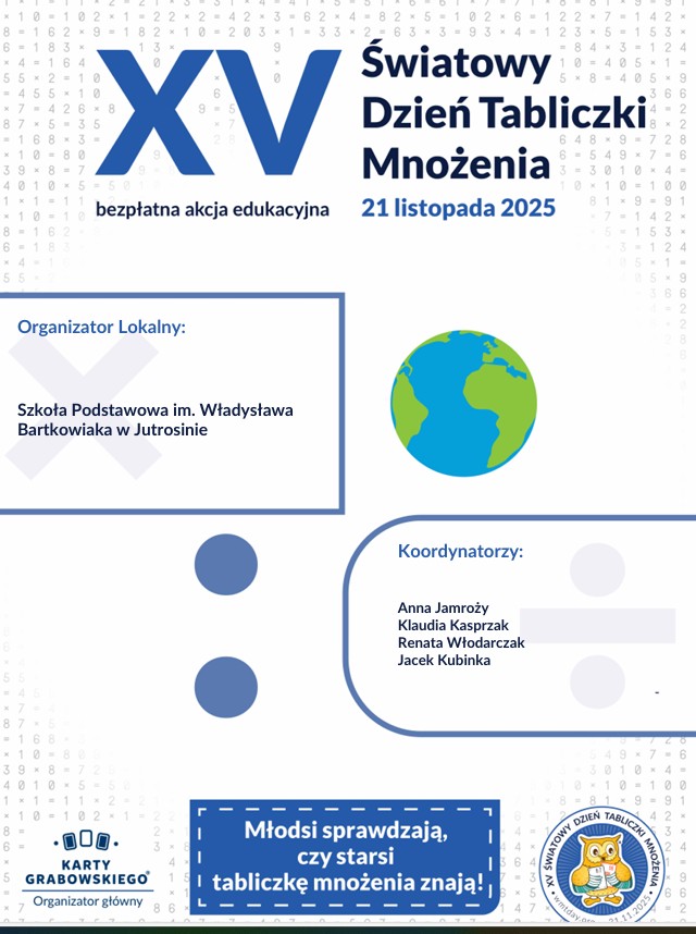 Nasza szkoła uczestniczy w akcji XV Światowy Dzień Tabliczki Mnożenia organizowanej 21 listopada 2025 r. pod hasłem: