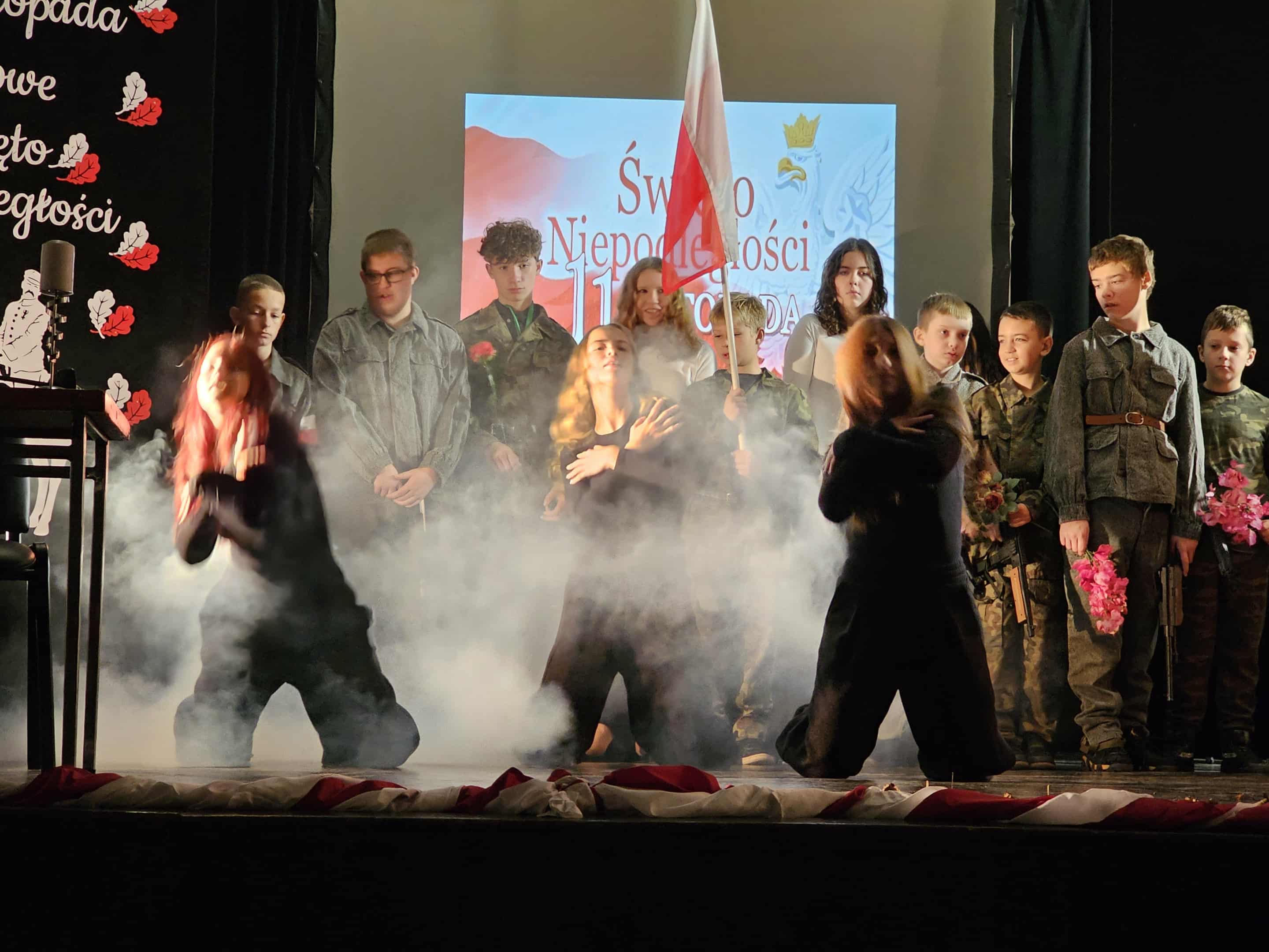 W przeddzień obchodów rocznicy Święta Niepodległości uczniowie Szkoły Podstawowej w Jutrosinie przypomnieli o doniosłych czynach sprzed lat. W inscenizacji, którą z tej okazji przygotowano uczniowie wprowadzili w świąteczny i patriotyczny nastrój zgromadzonych w jutrosińskim Domu Kultury: Pana Burmistrza, Dyrekcję szkoły, Pana Ireneusza Mikołajewskiego, grono pedagogiczne oraz swoich rówieśników. Przypomnieli dramatyczną zmagania Polaków i ich poświęcenie w walce o niepodległość. Przypomnieli najważniejsze wydarzenia historyczne ze 123 lat niewoli i determinację naszych przodków w walce o wolną Polskę.