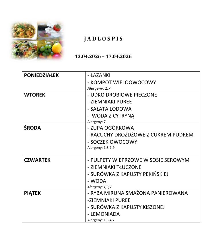 - Rodzice do 27. dnia każdego miesiąca poprzedzającego korzystanie z obiadów, składają deklarację u intendentki szkoły o ilości obiadów w kolejnym miesiącu.