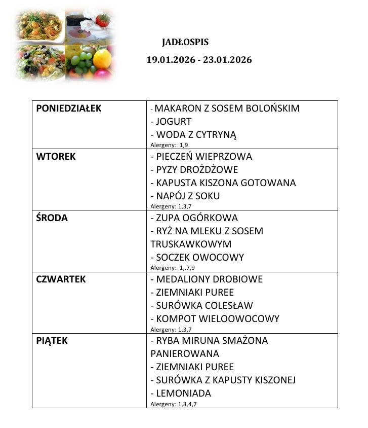 - Rodzice do 27. dnia każdego miesiąca poprzedzającego korzystanie z obiadów, składają deklarację u intendentki szkoły o ilości obiadów w kolejnym miesiącu.