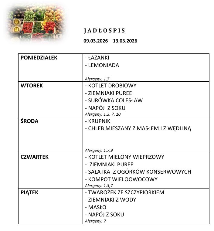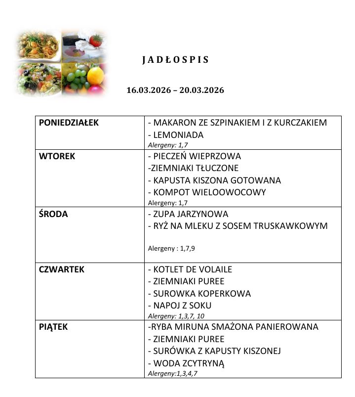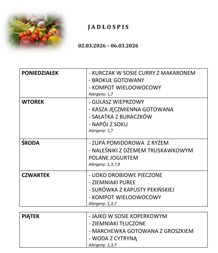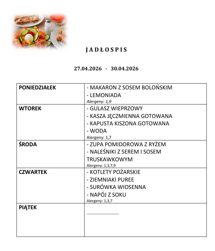 - Rodzice do 27. dnia każdego miesiąca poprzedzającego korzystanie z obiadów, składają deklarację u intendentki szkoły o ilości obiadów w kolejnym miesiącu.