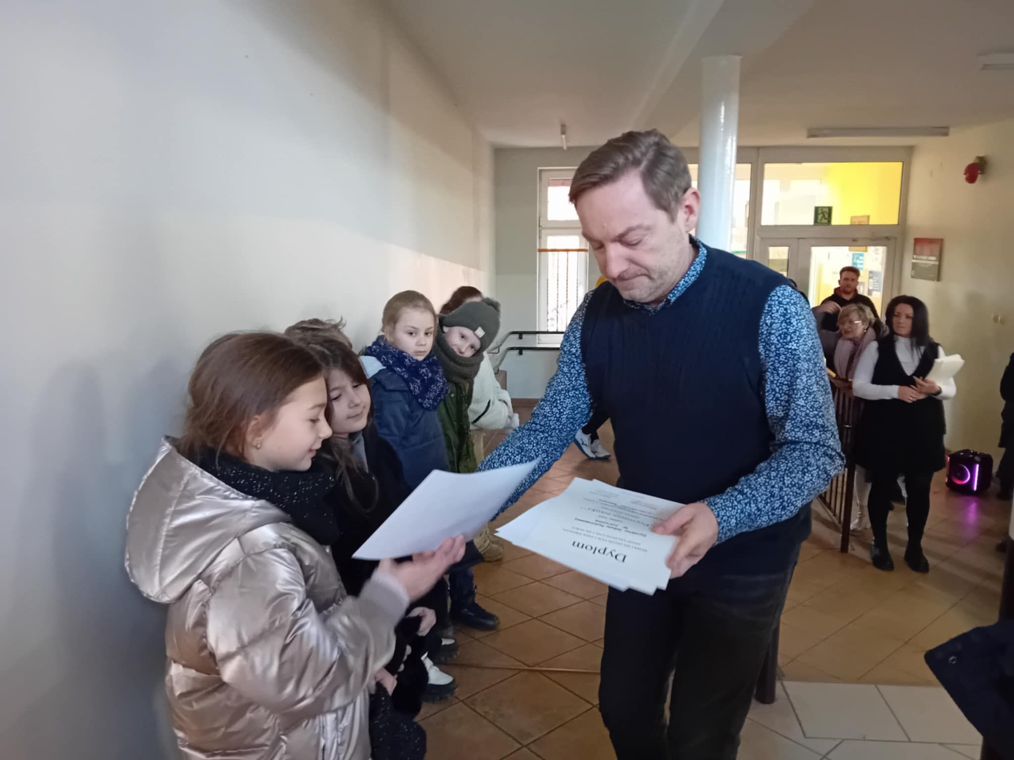W ramach obchodów Dnia Edukacji Narodowej Samorząd Uczniowski w klasach 4-8 zorganizował quiz „ Rozpoznaj nauczyciela”. Zabawa polegała na rozpoznaniu nauczycieli uczących w klasach 4-8 po opisie ich cech charakterystycznych. Zadania dotyczyły szesnastu nauczycieli, na temat których uczniowie ułożyli quiz. W zabawę zaangażowało się bardzo dużo uczniów i quiz okazał się nie lada wyzwaniem, które wzbudzało dużo emocji. Wielu uczniów bardzo dobrze sobie poradziło, co świadczy o tym, że bardzo dobrze znają swoich nauczycieli. Najlepszy wynik osiągnęło pięciu uczniów: