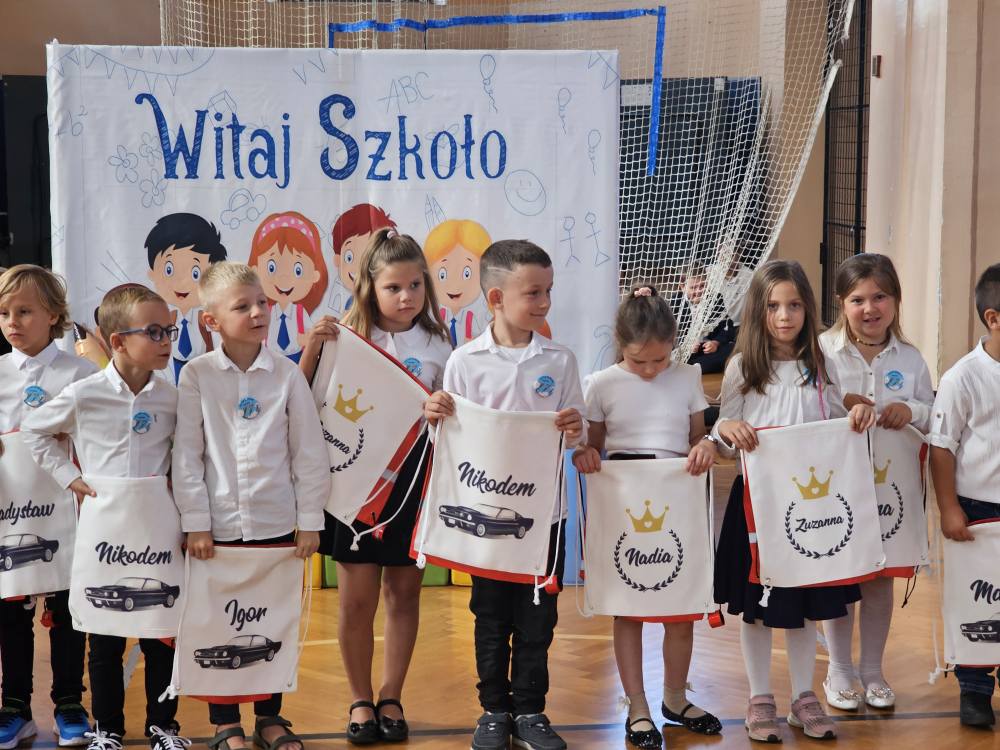 Na pamiątkę tego wydarzenia pierwszaki otrzymali worki do stroju sportowego ze swoim imieniem ufundowane przez Radę Rodziców SP w Jutrosinie.